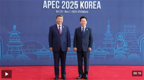 習(xí)近平主席抵達(dá)時(shí),韓國總統(tǒng)李在明熱情迎接。兩國元首握手、合影,留下珍貴的“APEC瞬間”。隨后,兩位領(lǐng)導(dǎo)人微笑交談,共同步入會(huì)場。